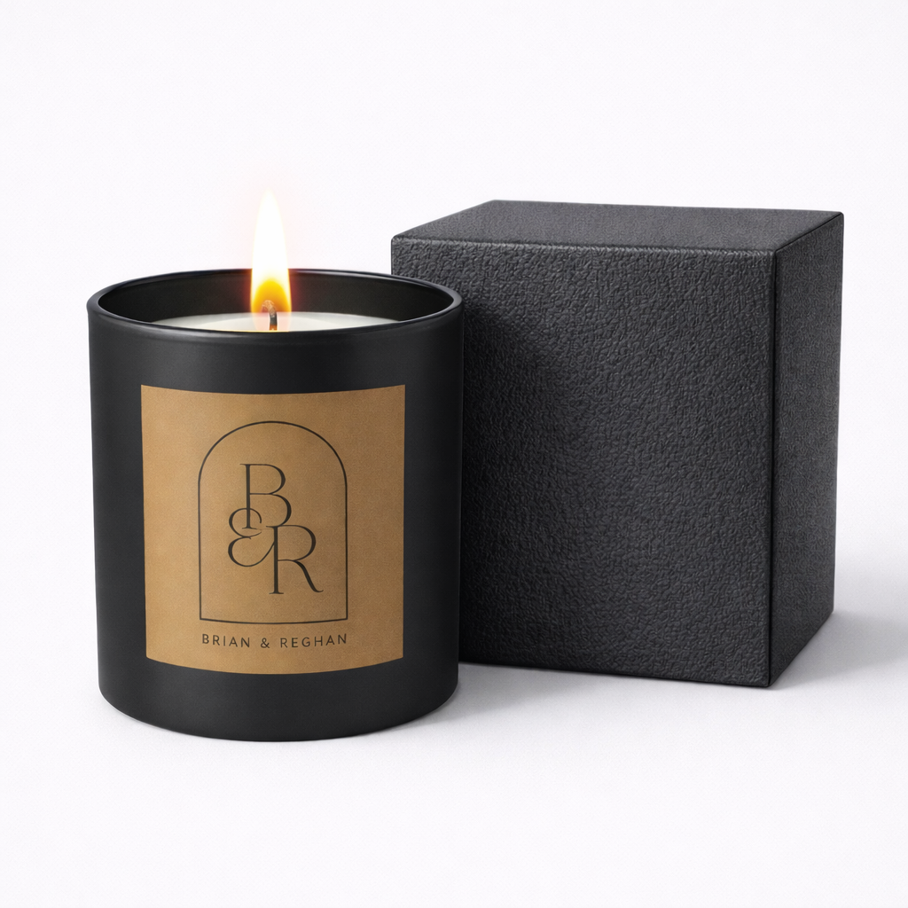 Make a bold impression with our 10oz matte black glass candle featuring a vibrant, full-color custom label and premium gift-ready packaging. Hand-poured by expert chandlers in North America using eco-friendly soy wax and clean fragrances.