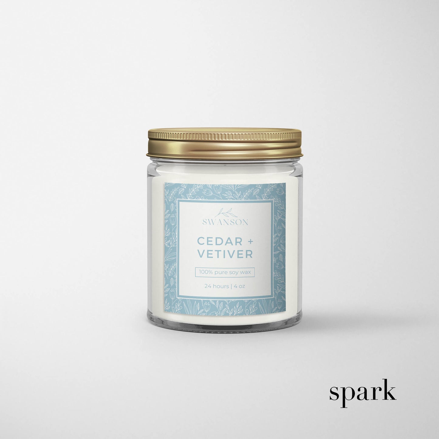 - Vessel: 8oz clear glass jar (2.9" W × 3.7" H)